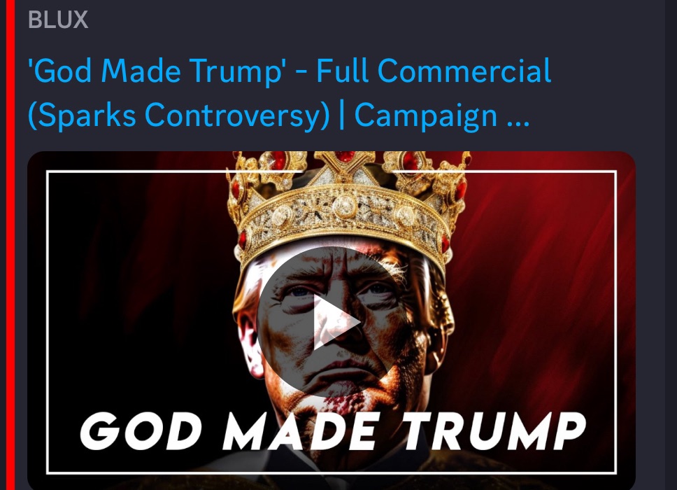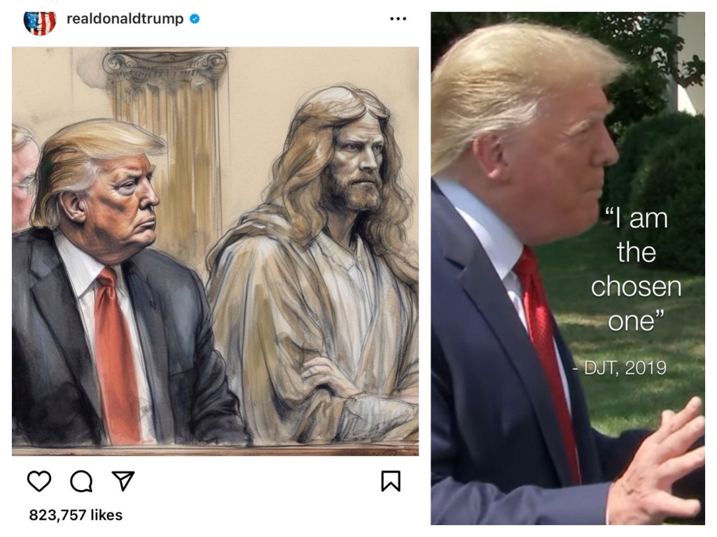 Trump has the Save America Campaign and continues to be seen as a savior. He made the comment that he was the chosen one. He posted himself sitting next to JC on his Insta post. He just released the video “God made Trump”. Here.