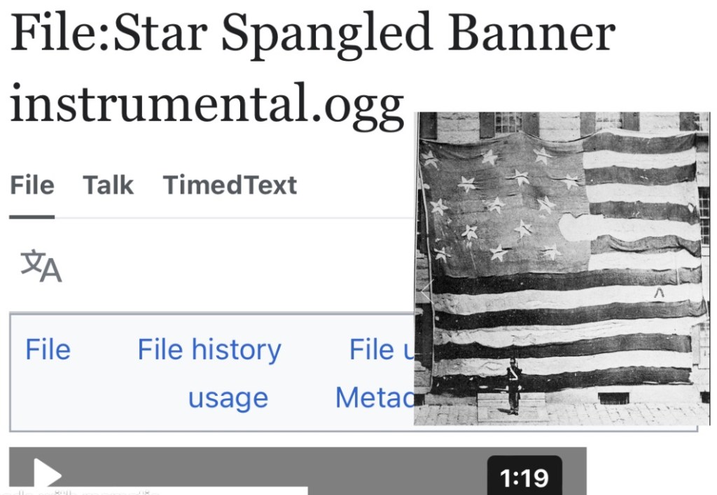 How about the famous National Anthem where it is customary like in any sovereign nation to pay respect and turn toward the flag. Well, the name of the anthem is The Star Spangled Banner, based on Francis Scott Key’s account on the British bombardment of Fort McHenry that started at dawn on September 13, 1814. Yep, on 9/13. Wiki has an audio clip, curiously at a displayed length of 1:19: The_Star-Spangled_Banner