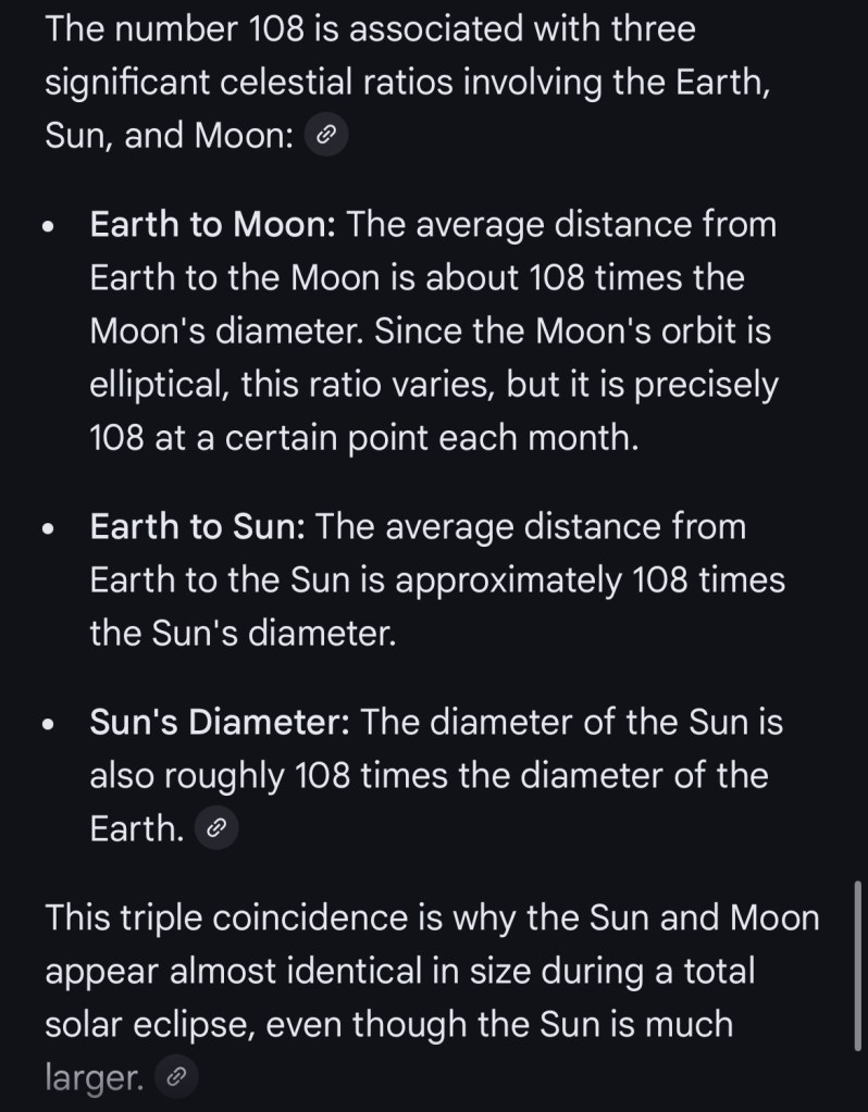An Octaeteris consisting of 8 years and 1 day is so darn interesting, not just because it’s a time span related to the earth, sun and moon, but that 108 is also a big astronomical number to the same planetary entities! “Ask AI”: