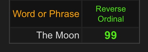 108 can also be a wink to 8 years and 1 day, the time of an Octaeteris. One can say that 99 and 108 are tied because they are in the sense that 99 moons = 8 years and 1 day. Of course 9 x 9 = 81 which is an easy way to remember the alignment of time. Btw, “The Moon” = 99 Reverse Ordinal.